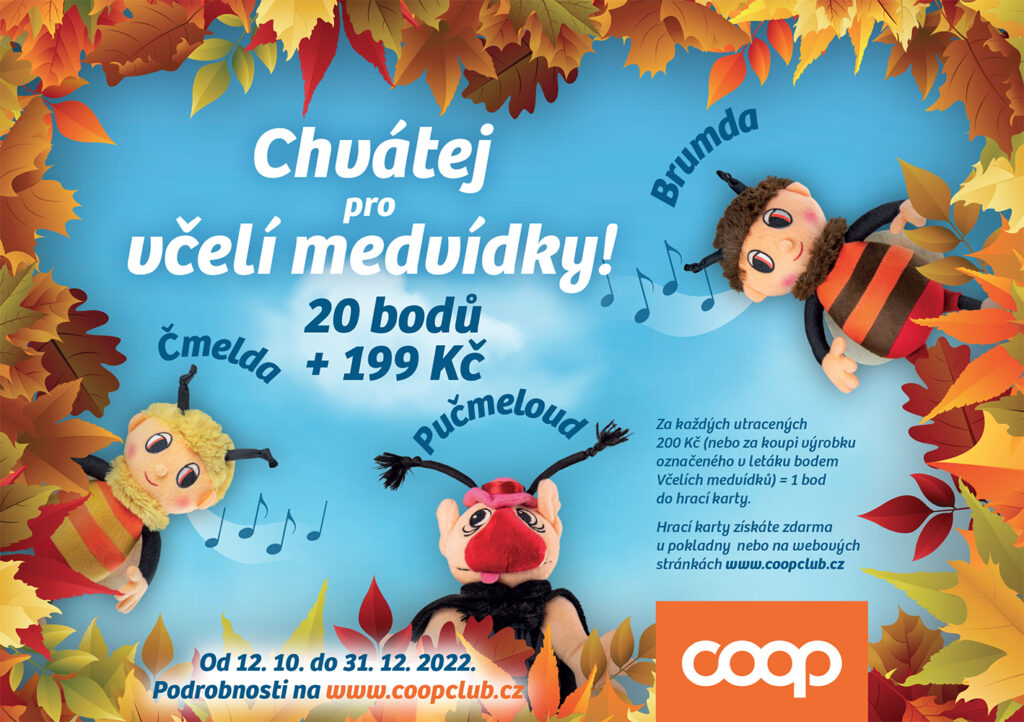Sbírej body v prodejnách COOP a získej zpívající včelí medvídky – Čmeldu, Brumdu nebo Pučmelouda!