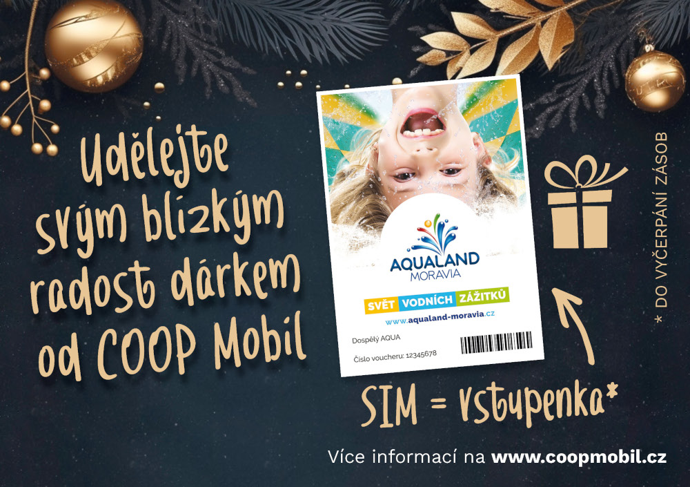 Pořiďte si COOP Mobil SIM kartu na e-shopu a jeďte na celý den do AQUALANDU. Pokud v daném období zároveň dobijete minimálně 150 Kč, máte možnost získat další lístek do AQUALANDU.